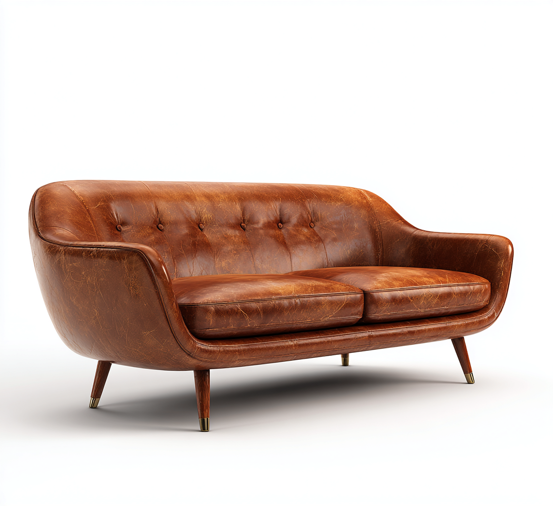 Il rivestimento è realizzato in pelle di colore marrone con finitura dall'aspetto naturale. La struttura interna è progettata per garantire stabilità e durata nel tempo, con cuciture curate che valorizzano le superfici.