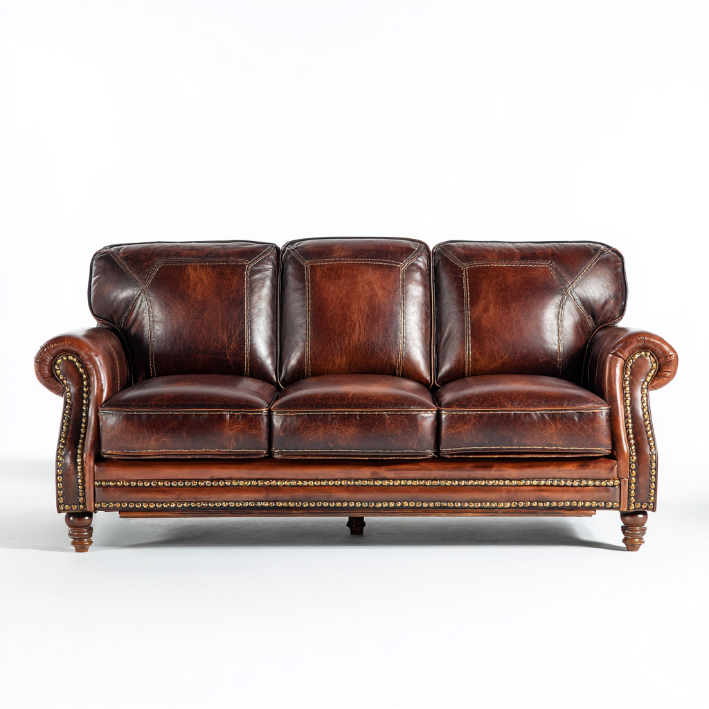 Il rivestimento è realizzato in pelle di colore marrone, selezionata per offrire una superficie piacevole al tatto e resistente all'uso quotidiano. La struttura è studiata per garantire stabilità e supporto, con cuciture visibili che valorizzano l'estetica complessiva.